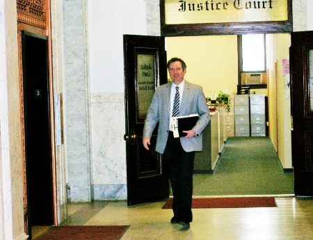 Above: Robert J Quinn, leaving historic Butte Justice Court after resolving yet another important legal matter.